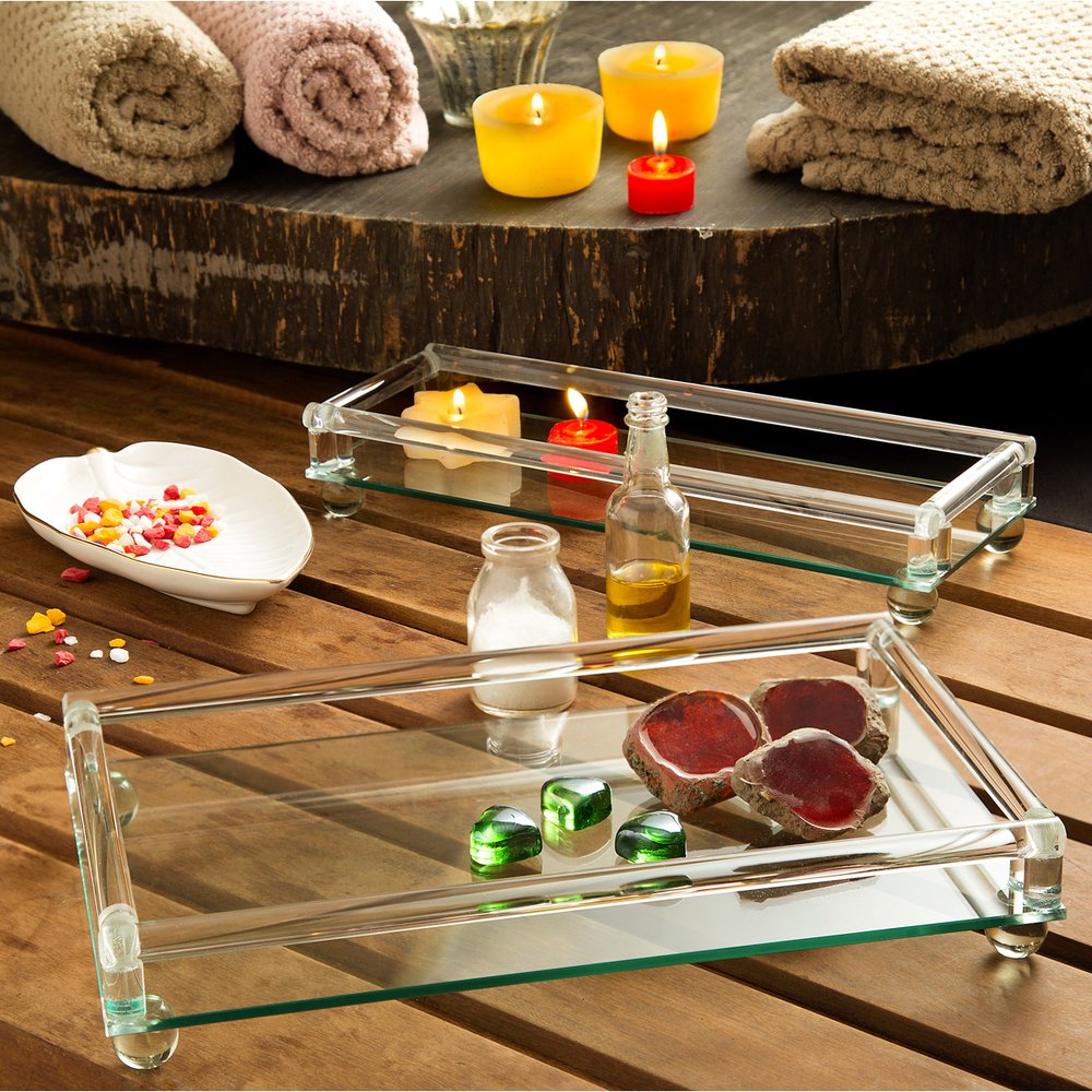 Seu design retangular oferece uma base ampla e espaçosa, permitindo que você organize seus itens de forma prática e organizada. Além de sua beleza estética, ela também é extremamente versátil. Use-a para exibir suas fragrâncias favoritas, acomodar sabonetes luxuosos, organizar pincéis de maquiagem ou até mesmo para manter acessórios de cabelo e joias ao alcance das mãos. Com sua superfície plana e resistente, a bandeja é fácil de limpar e mantém seus itens protegidos de possíveis respingos ou acúmulos de umidade. Além disso, seu formato retangular se encaixa perfeitamente em diversos espaços, seja ao lado da pia, sobre a bancada ou em prateleiras.