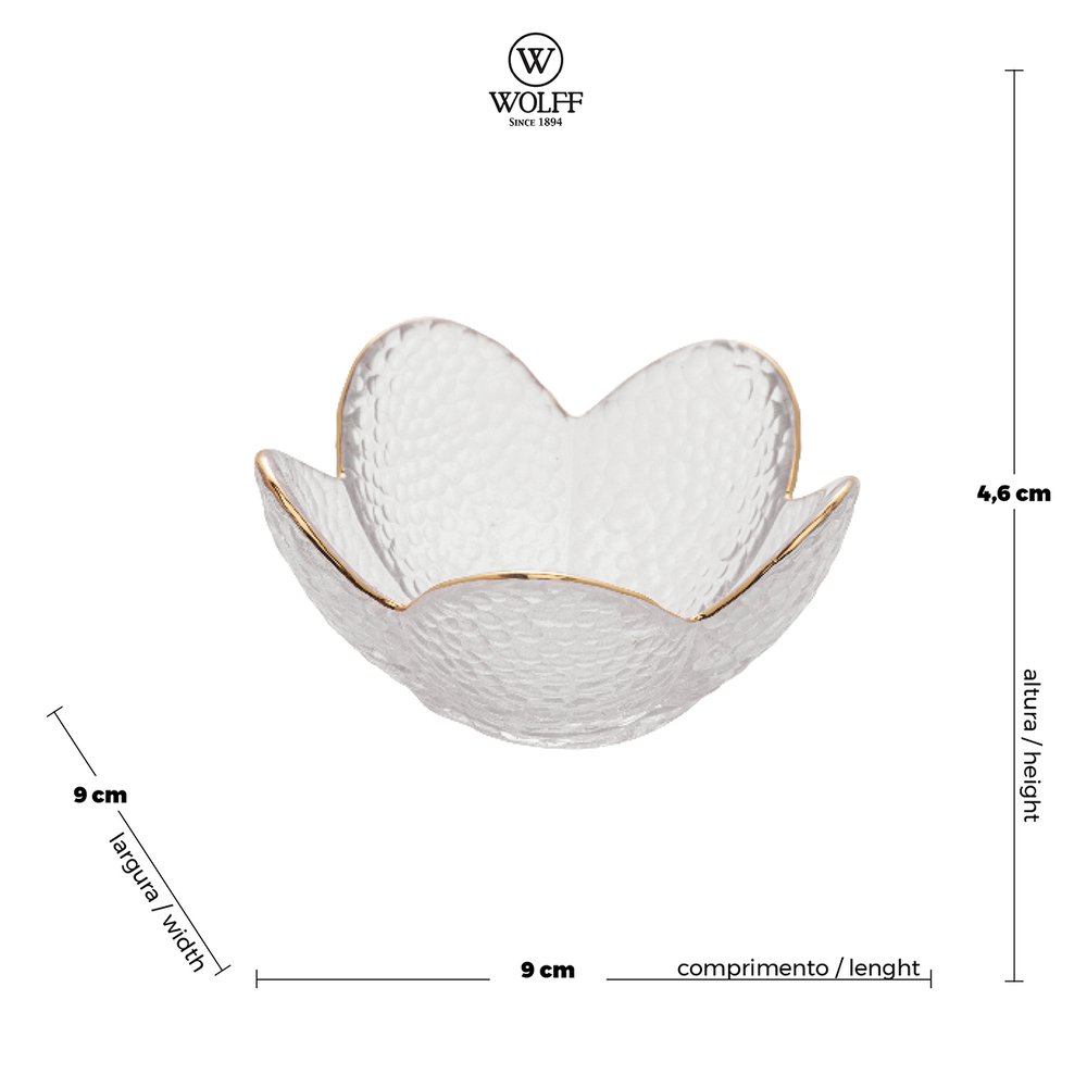 O Bowl em Cristal é elegante e traz o requinte à mesa ao servir seus convidados. Esta peça conta com design sofisticado e detalhes charmosos em formato de Flor.