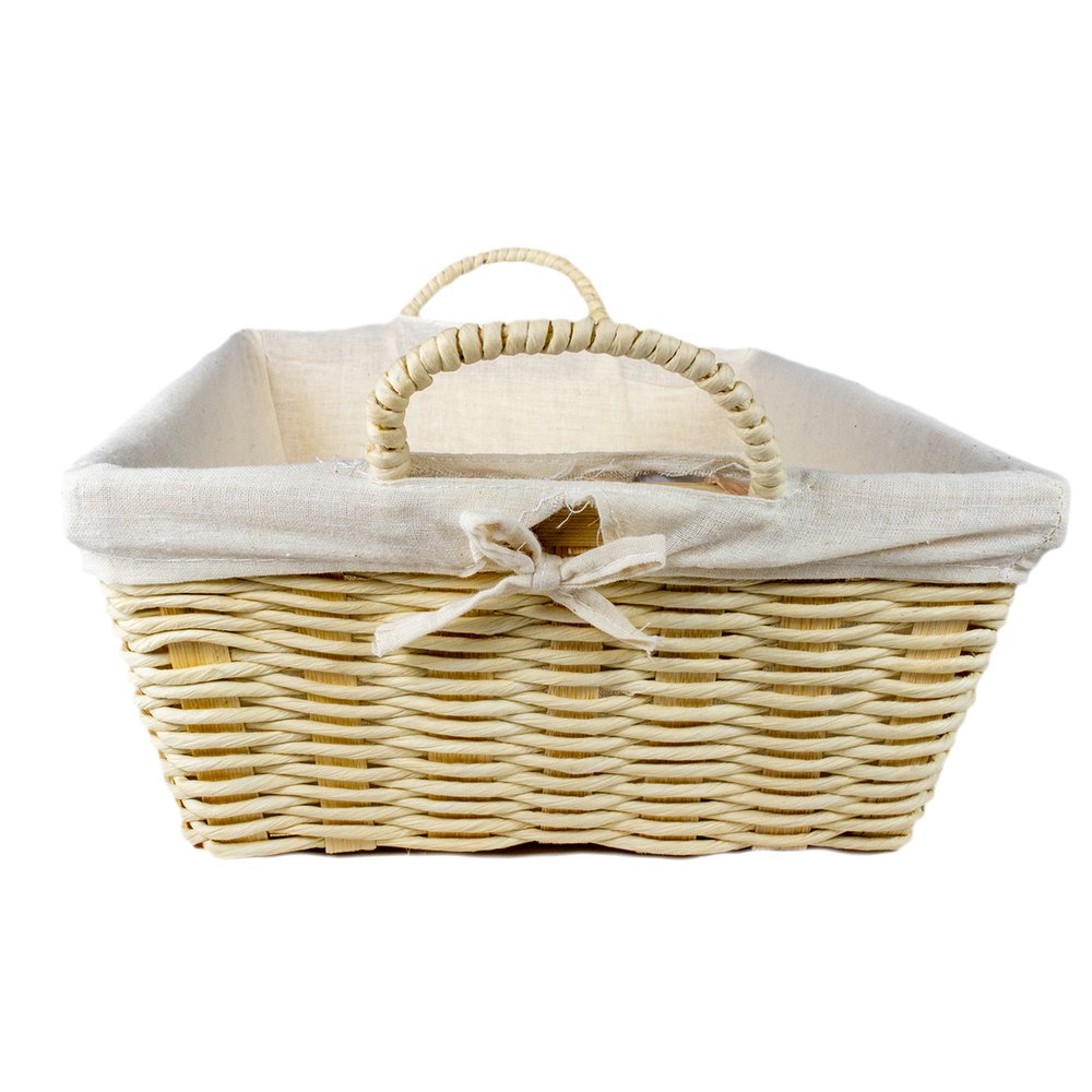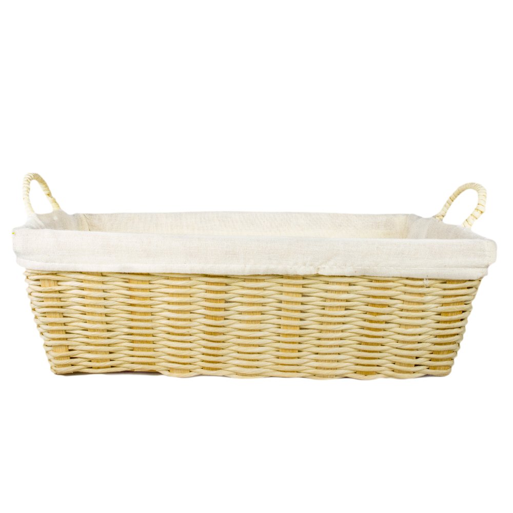 Cesta Retangular Bege com Forro em Tecido