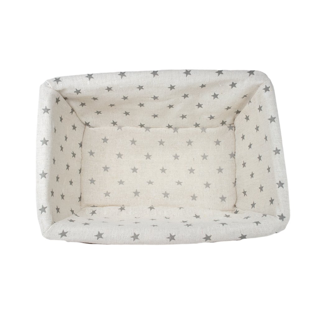 Construída com materiais naturais de alta qualidade, esta cesta combina praticidade com estilo. Seu forro em tecido estampado com estrelinhas adiciona um toque lúdico, enquanto o branco suave transmite serenidade. Também é um item decorativo encantador. Sua estampa única e design atemporal complementam vários estilos de decoração.