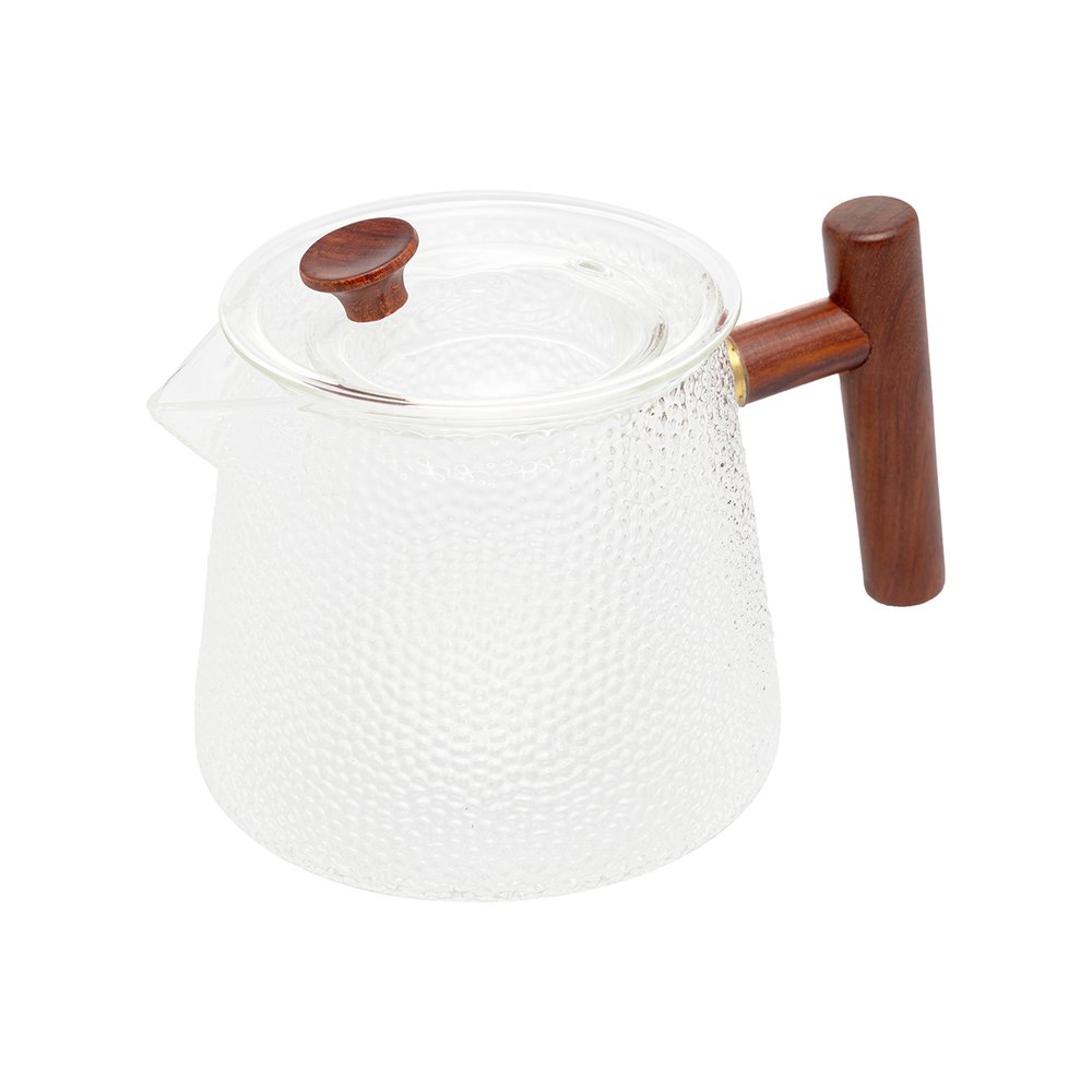 Chaleira de Vidro Borossilicato Martelado com Alça de Madeira