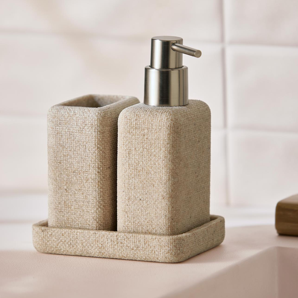O porta-sabonete líquido oferece praticidade e elegância, enquanto o porta-escovas mantém a organização com um toque de classe. A bandeja complementa o conjunto, servindo como base perfeita para organizar e embelezar seu espaço. Ideal para quem valoriza detalhes e quer transformar o cotidiano em um momento de prazer e cuidado.