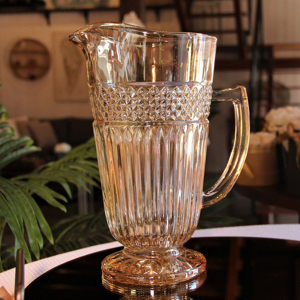 Jarra ideal para completar a decoração do ambiente, seus detalhes e entalhes são originais e diversificam a aparência de seus itens para mesa.
