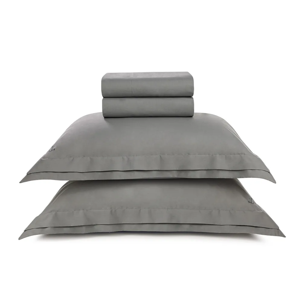 Inspirado no requinte da alfaiataria, o jogo de cama apresenta um acabamento impecável. O monograma “T”, bordado em ton sur ton, adiciona um detalhe exclusivo e sofisticado. As fronhas possuem quatro abas duplas, reforçando a elegância e o cuidado com cada peça.