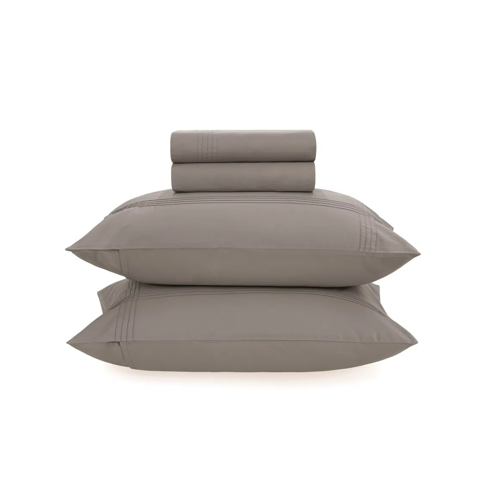 O jogo de cama possui 300 fios confeccionado em cetim, garantindo um tecido mais macio, durável e com toque suave. Quanto maior a contagem de fios, mais luxuosa e confortável é a sensação ao toque.