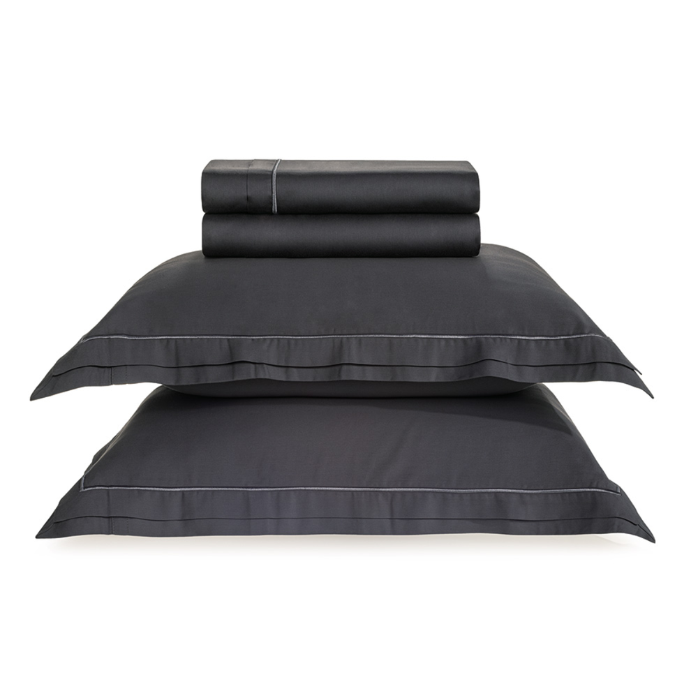 O Jogo de Cama Doppio é confeccionado em cetim de 300 fios, feito de 100% Algodão Egípcio. Esse tecido de altíssima qualidade oferece um toque extremamente suave e sedoso, proporcionando uma experiência de sono inigualável.