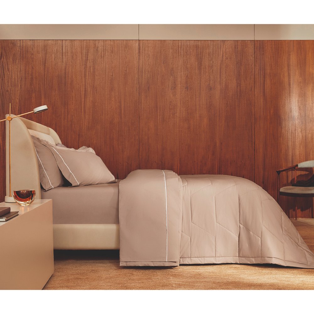 Adicione sofisticação e conforto ao seu quarto com o Jogo de Cama Trussardi Enrico. Com suas cores clássicas e tecido mercerizado e sanforizado em Percal de 300 fios e 100% algodão egípcio, este jogo de cama é elegante e fácil de combinar com outros itens da coleção. A aplicação de vivo nas fronhas e na dobra feita acrescenta um detalhe vibrante. O lençol de baixo, com elástico, facilita a troca e economiza seu tempo. A coleção La Serenissima da Trussardi celebra a arte e a beleza de Veneza, inspirando novas sensações e memórias. Vivas a experiência única da cama Enrico e surpreenda-se com o conforto máximo da Trussardi.