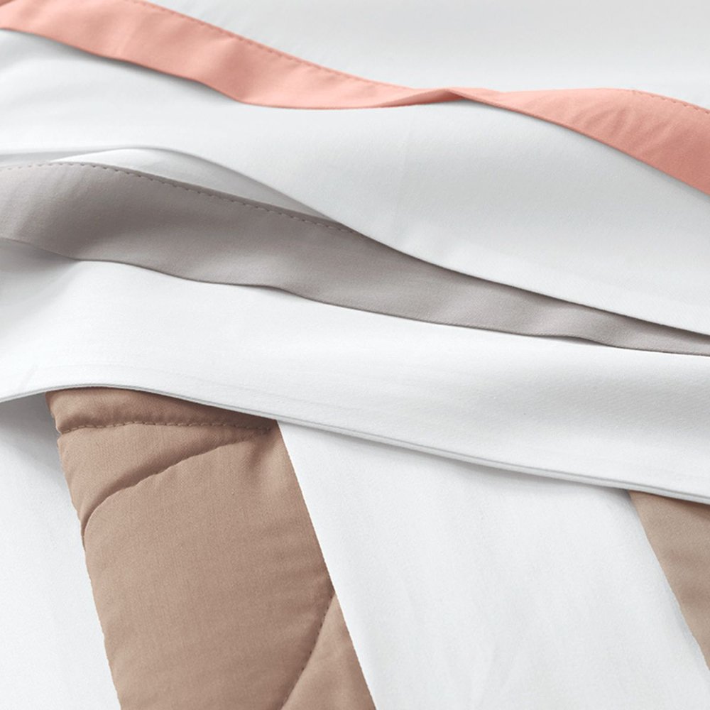 Cama Vercelli torna-se um atemporal em 300 fios de fácil coordenação, inspirado em construções de alfaiataria, tornando a composição da cama clássica e elegante.