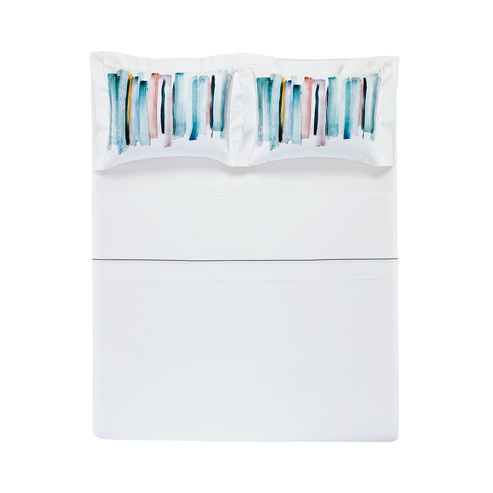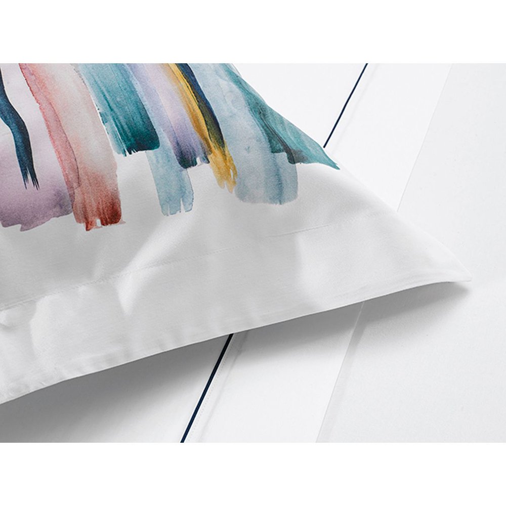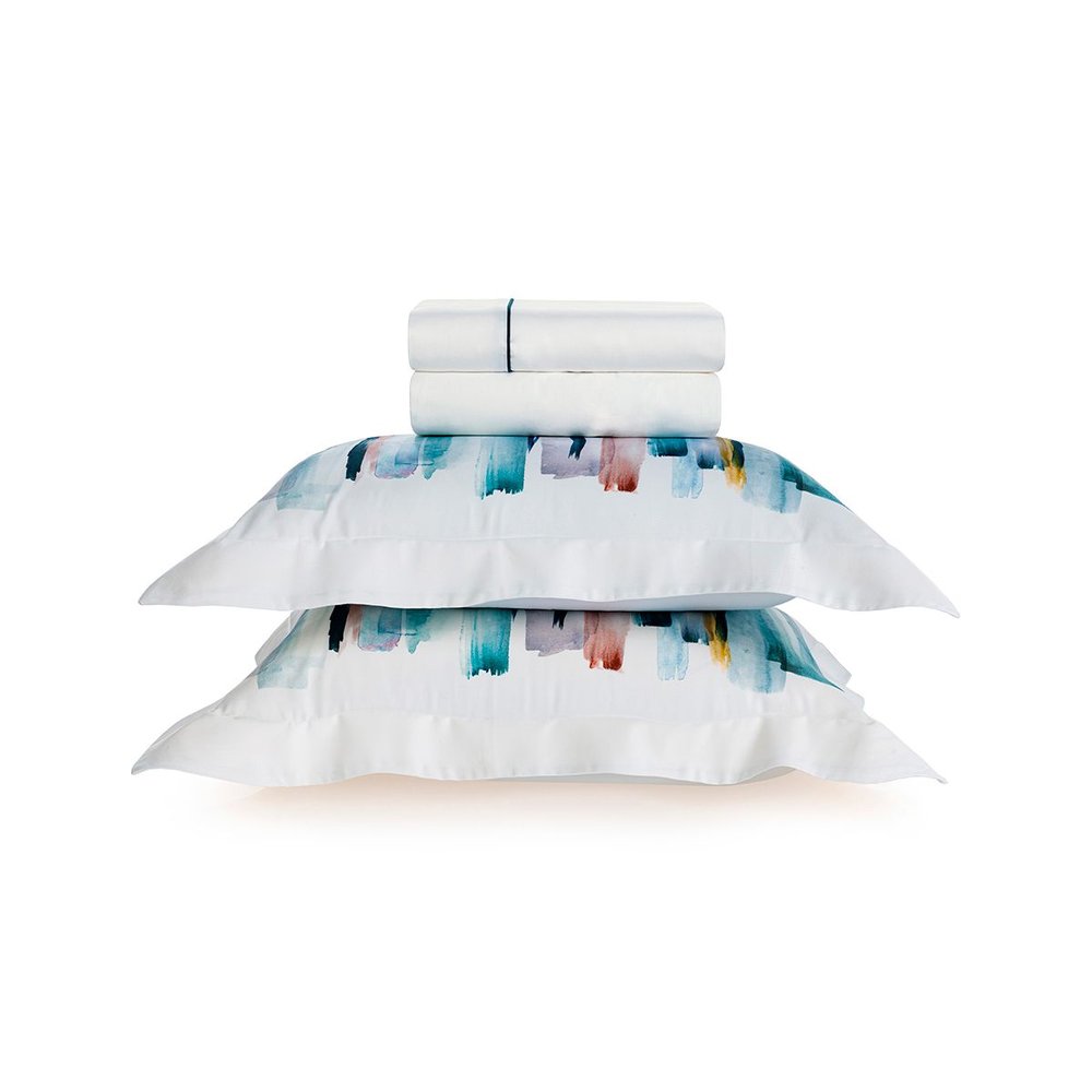 O jogo de cama Merise, possui lençol, sobre lençol nas cores branco e azul marinho, sua fronha com estampa digital remete a pinceladas de aquarela, tem sua inspiração nos reflexos de embarcações do mar de Bari – Puglia. A transparência e fusão das cores, faz de Merise elegante e descontraído com um toque de sutileza. Confeccionado em Cetim 300 fios e 100% Algodão Egípcio, transfere maciez e conforto, para uma incrível noite de sono. Permita-se abraçar com a melhor qualidade! Possui acabamento mercerizado. Fronha dimensionada. Sobre lençol com vira e cordonê aplicado. Todos esses elementos trazem um acabamento perfeito para a cama.