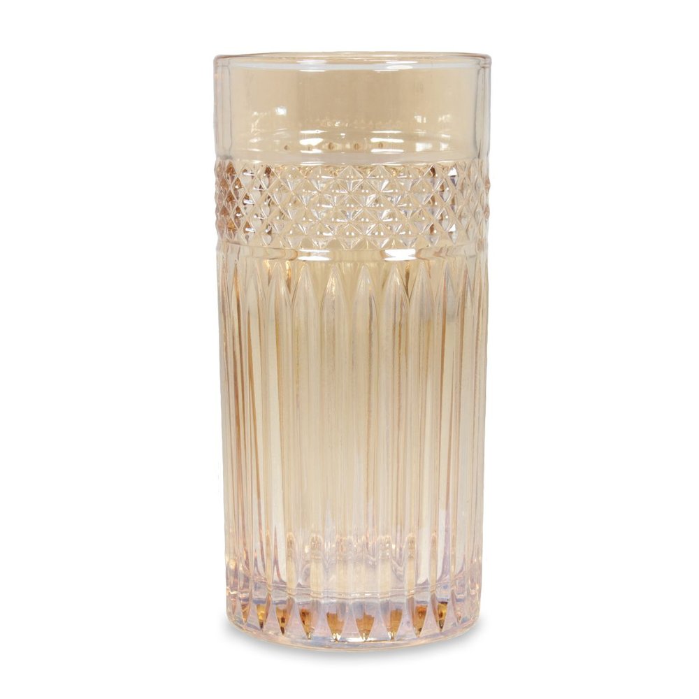 O conjunto de 6 copos altos, usa de matéria prima o vidro, contendo sílica de alta qualidade, filtrada e purificada, assim tirando todo dióxido de ferro. Isto confere aos copos, transparência e um brilho único.