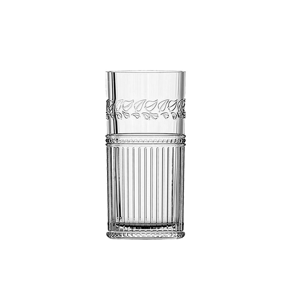 O conjunto de 6 copos altos, usa de matéria prima o vidro, contendo sílica de alta qualidade, filtrada e purificada, assim tirando todo dióxido de ferro. Isto confere aos copos, transparência e um brilho único.