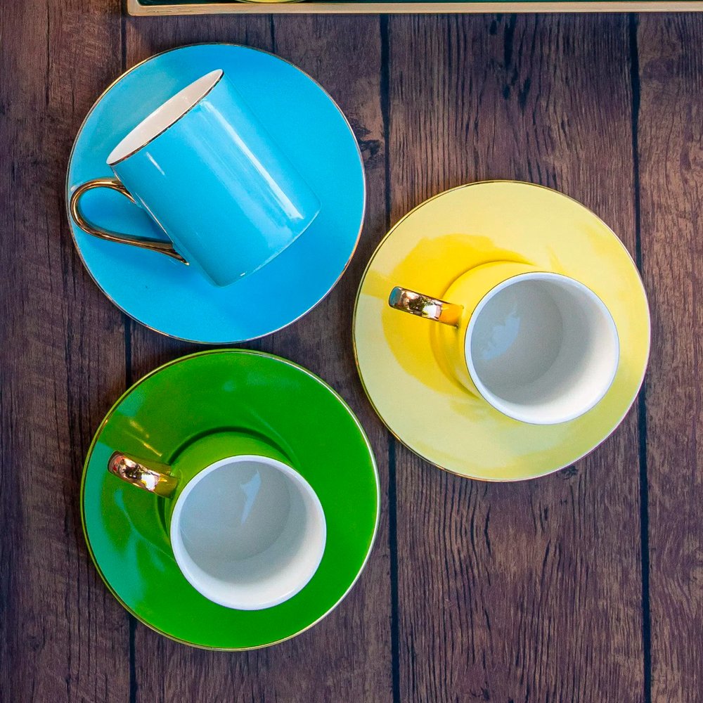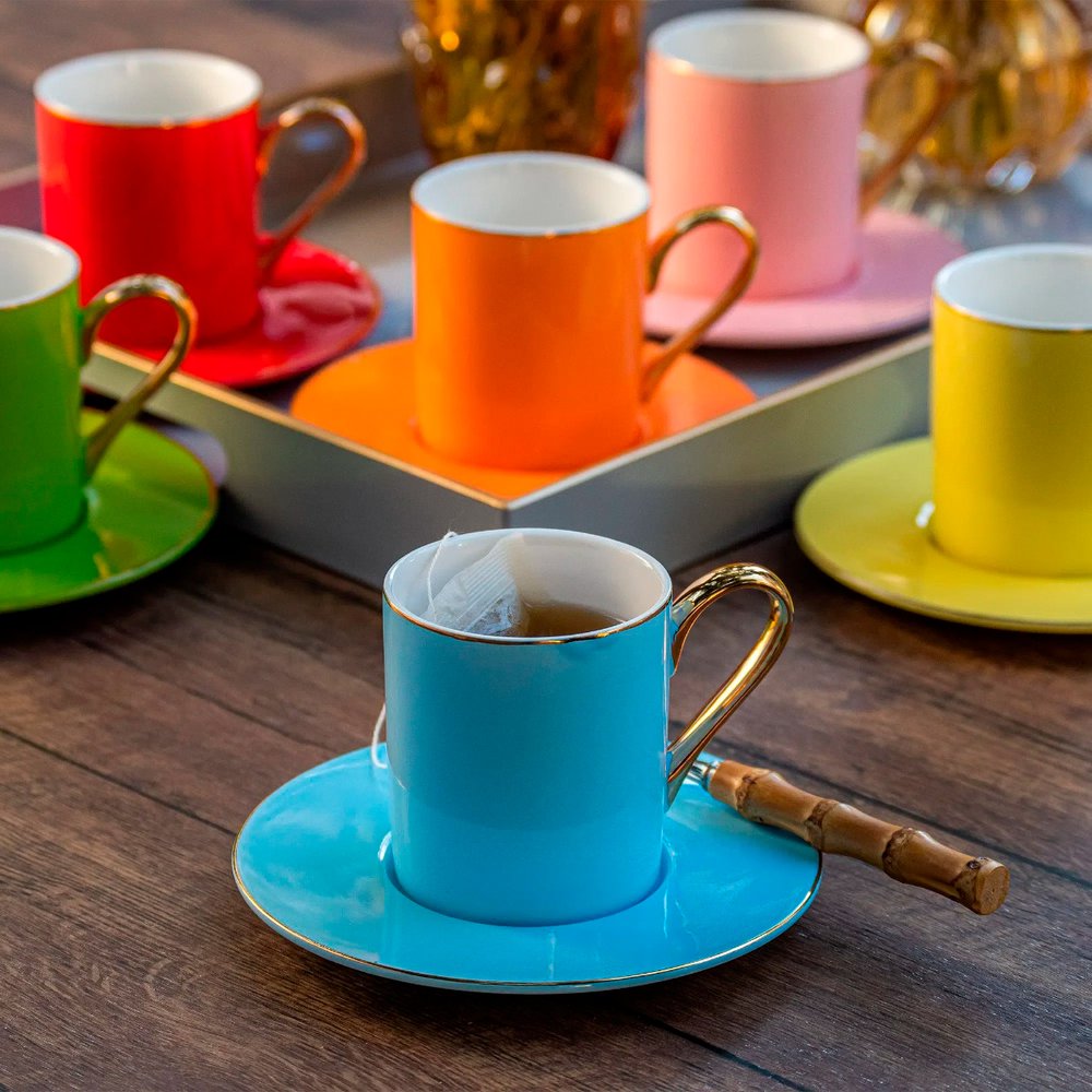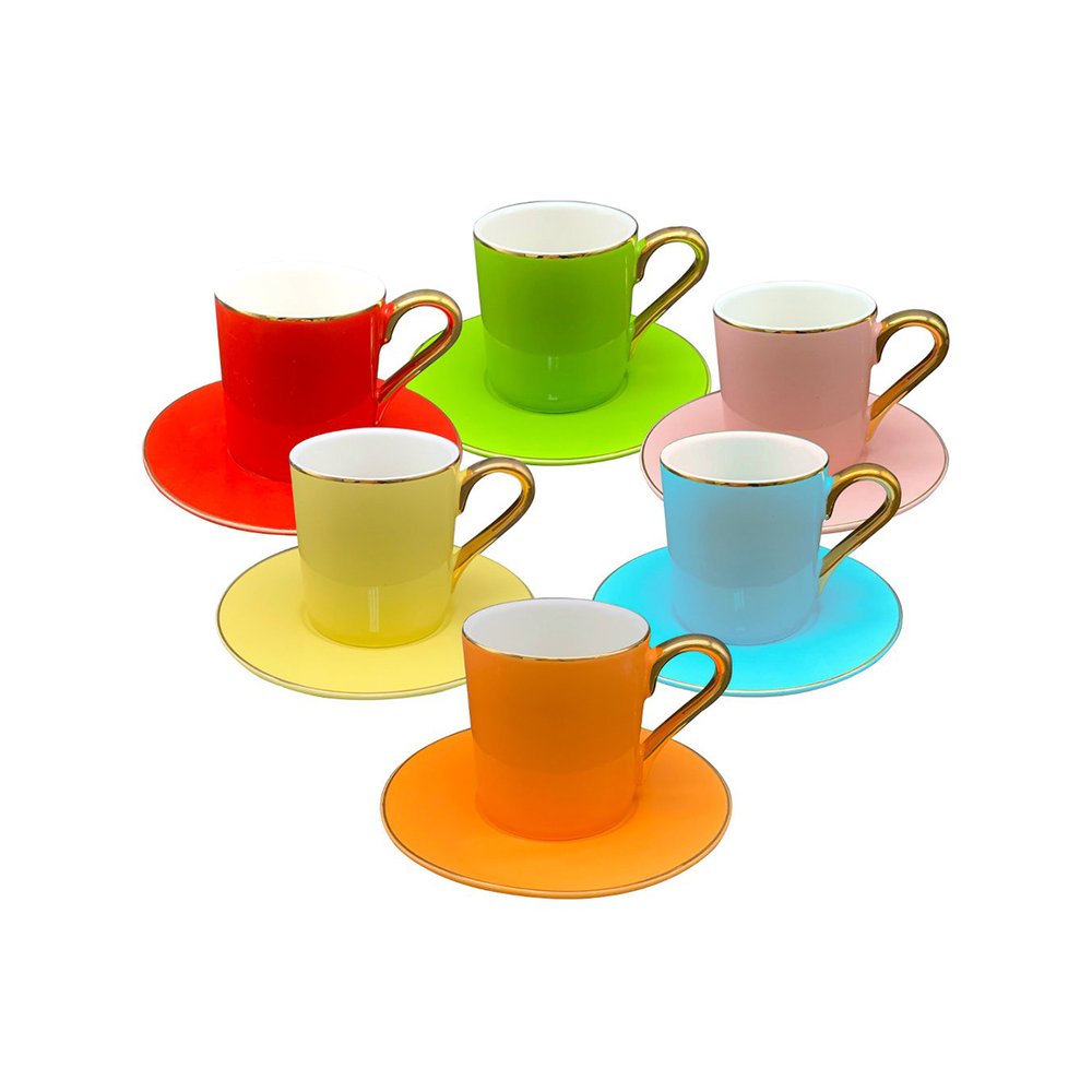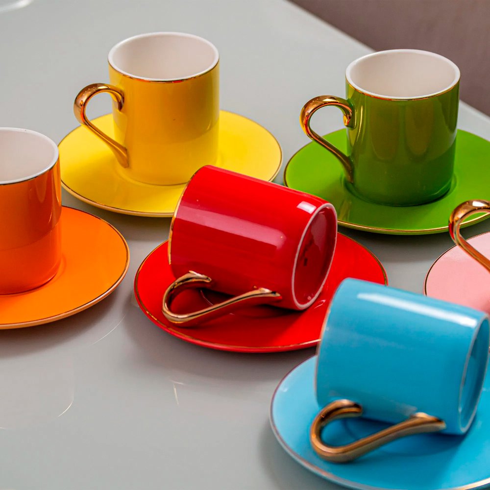 Encante seus momentos de chá com o requinte e a elegância deste jogo de chá composto por 6 xícaras e 6 pires. Cada xícara é uma expressão de cor e sofisticação, combinando perfeitamente com seu respectivo pires em uma paleta de 6 tons exclusivos.