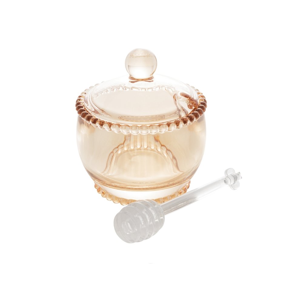 O cristal deslumbrante desta meleira adiciona um brilho cativante à sua mesa. Sua transparência permite que você admire a rica textura e a cor dourada do mel. Além de armazenar e servir mel, ela também é perfeita para acondicionar outros xaropes e líquidos semelhantes.