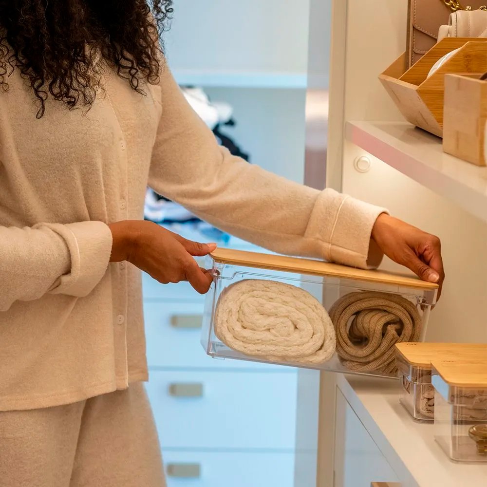Organizador Clear com Tampa de Bambu