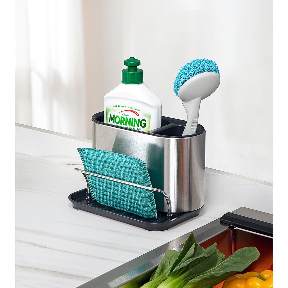 Perfeito para manter a pia organizada, esse produto é feito em plástico resistente e aço inoxidável, o que garante durabilidade e facilidade na limpeza. Além disso, ele tem um design moderno e elegante, que combina com qualquer estilo de cozinha. Com ele você pode guardar colheres, espátulas, esponja, detergente e outros itens essenciais para o seu dia a dia na cozinha.