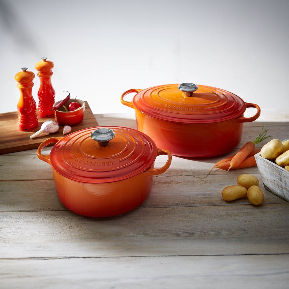 Sua forma oval é um diferencial que a torna única. Ideal para cortes generosos de carne, frangos inteiros ou para assar pães de formato oval, ela adiciona um toque de sofisticação a qualquer prato. Construída com maestria a partir de ferro fundido esmaltado, a Panela Oval Signature é uma obra-prima de durabilidade e beleza. Ela é mais do que uma panela - é um investimento em qualidade que perdurará por gerações, passando de cozinheiro para cozinheiro como um tesouro culinário.
