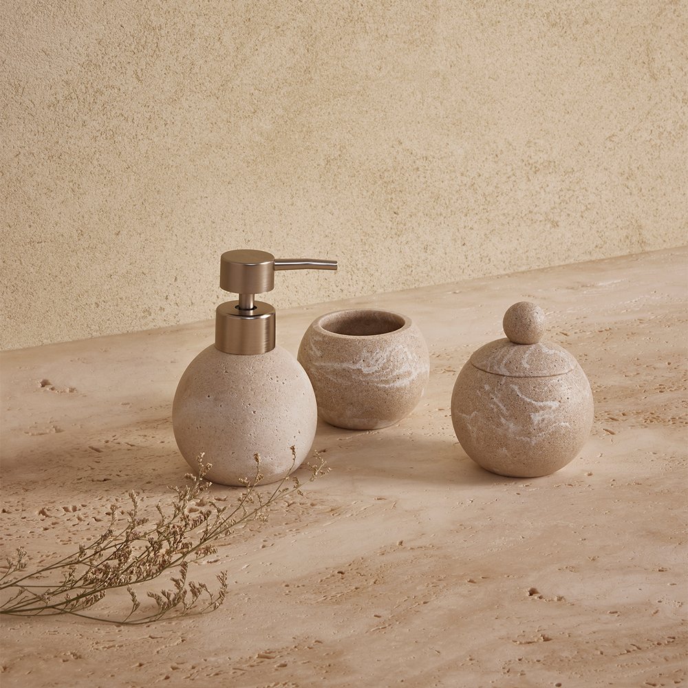 Com design elegante e sofisticado inspirado na beleza natural da pedra, este porta-escovas apresenta textura única e cores neutras que combinam com diversos estilos de decoração.