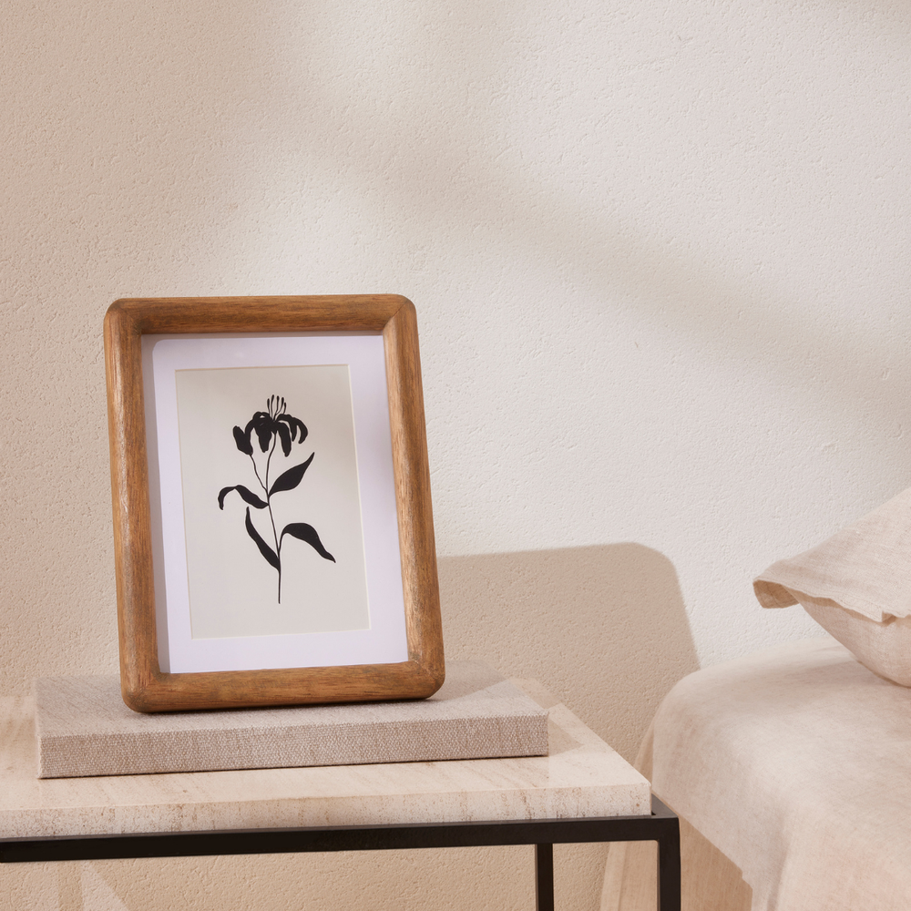 Capture suas memórias mais queridas com este porta-retrato de moldura em madeira natural, que exala simplicidade e elegância.